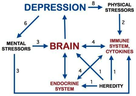 Il n’existe pas de cause unique à la dépression, celle-ci résultant probablement de l’action conjointe de facteurs génétiques et environnementaux. Une vulnérabilité biologique prédisposerait alors à des épisodes dépressifs volontiers déclenchés par divers facteurs de stress. Ceux-ci peuvent être d’ordre évènementiel, qu’ils soient négatifs (ruptures, décès, problèmes financiers, familiaux, professionnels etc.) ou positifs (naissance, mariage, déménagement, départ à la retraite etc.), ainsi que d’ordre médical (maladies physiques, déséquilibres hormonaux, troubles psychiatriques etc.).