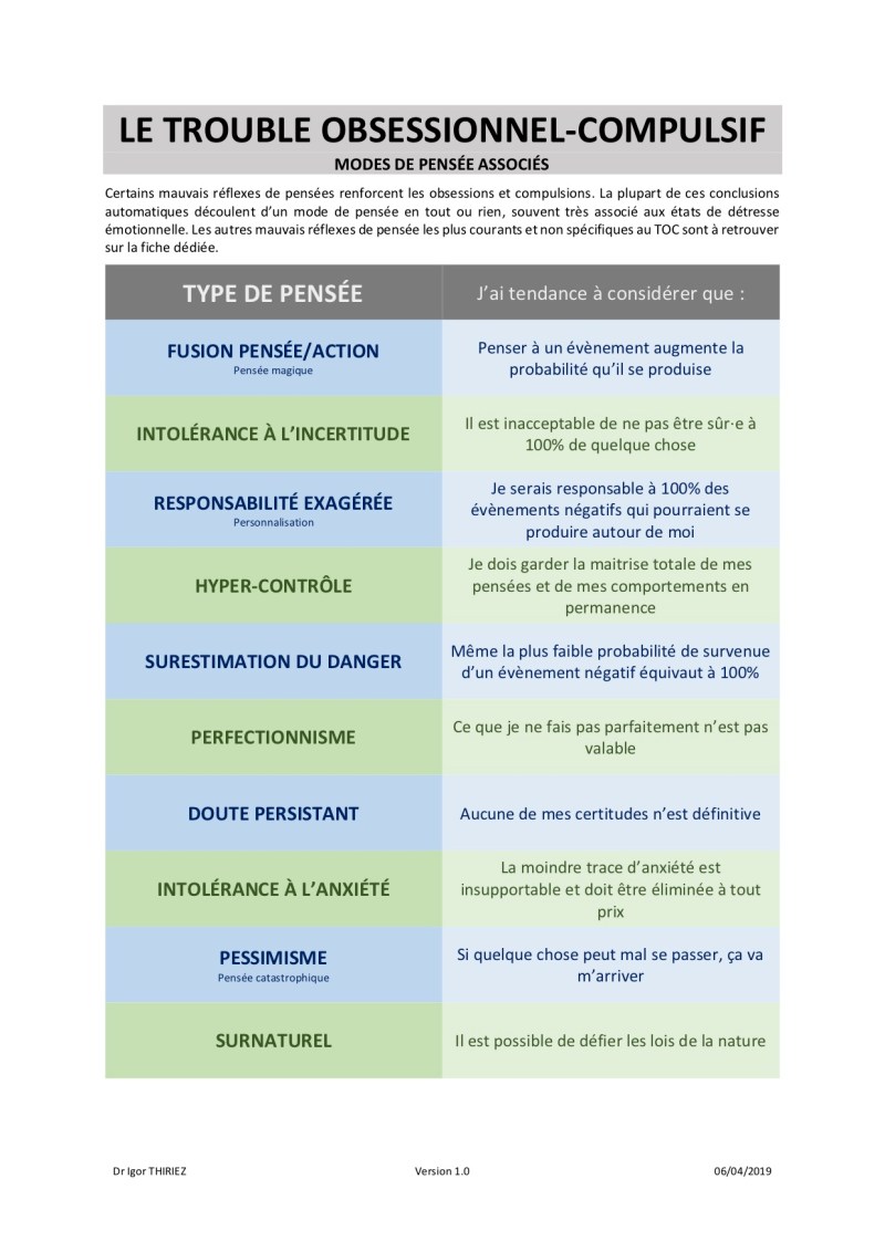 Le trouble obsessionnel-compulsif [modes de pensée] Fiches, Informer & Comprendre, Pensée & Décentration, Trouble obsessionnel-compulsif