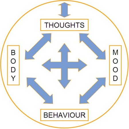 A cette approche comportementale se joint une démarche cognitive centrée sur les processus mentaux les plus élaborés, conscients ou non, responsables du traitement de l’information et de l’adaptation du patient au monde extérieur. Certains schémas de pensée dysfonctionnels, maintenus par divers biais de perception, d’interprétation ou de raisonnement, peuvent altérer les relations sociales ou l’estime de soi. Certaines techniques permettent d’accéder à ces schémas profonds à partir des pensées automatiques superficielles (ruminations ou monologue intérieur) et de les modifier afin de réduire la souffrance qu’ils procurent. A titre d’exemple, un patient déprimé ayant tendance à se blâmer pour des choses dont il n’est pas responsable est amené progressivement à élaborer des pensées alternatives plus rationnelles grâce à un jeu subtil de questions/réponses avec le thérapeute.